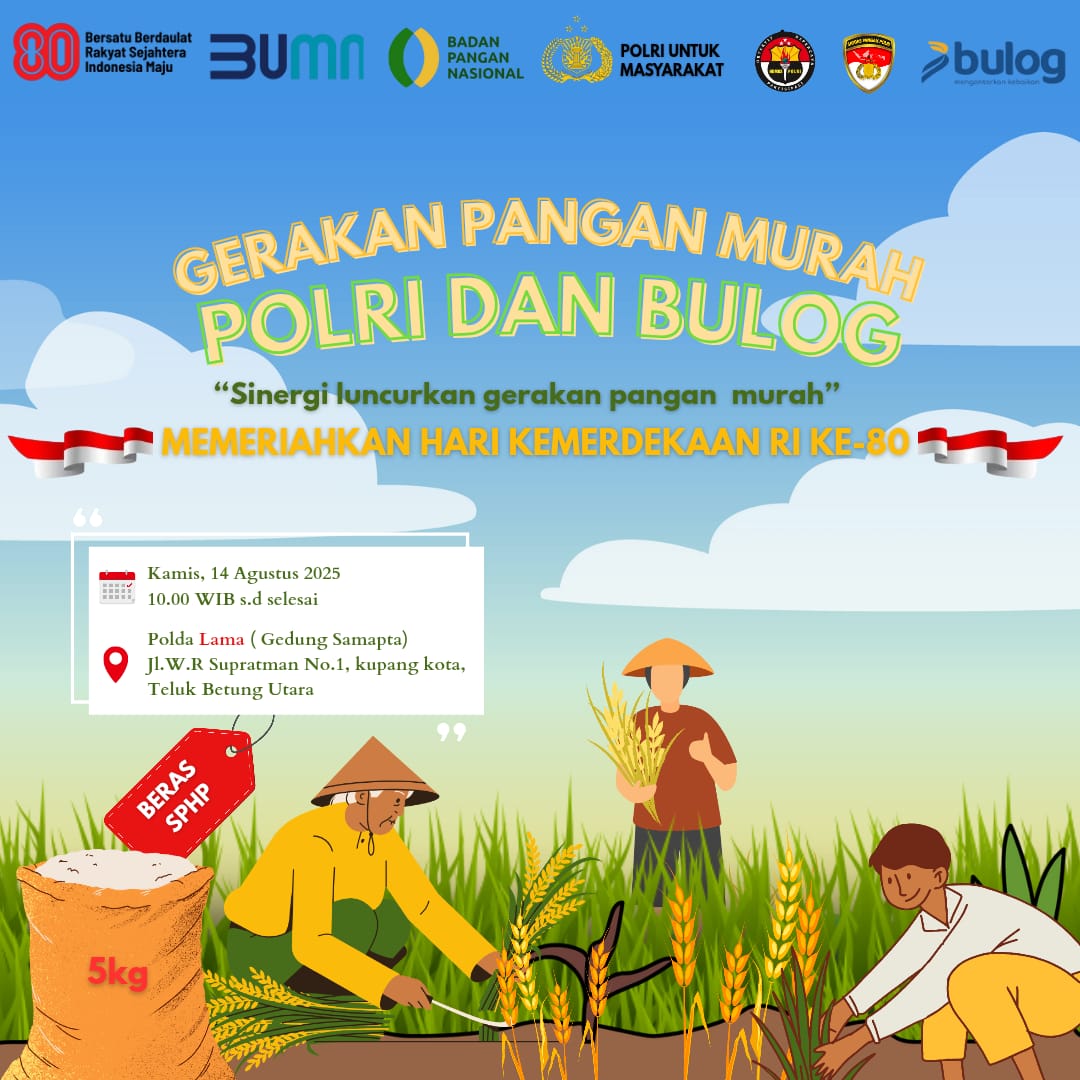 Lampung Selatan — Polda Lampung bersama Bulog Lampung telah menjual 15 ton beras murah kepada masyarakat dalam program Gerakan Pangan Murah (GPM) dan besok akan ada di Kantor Polda Lampung yang lama.