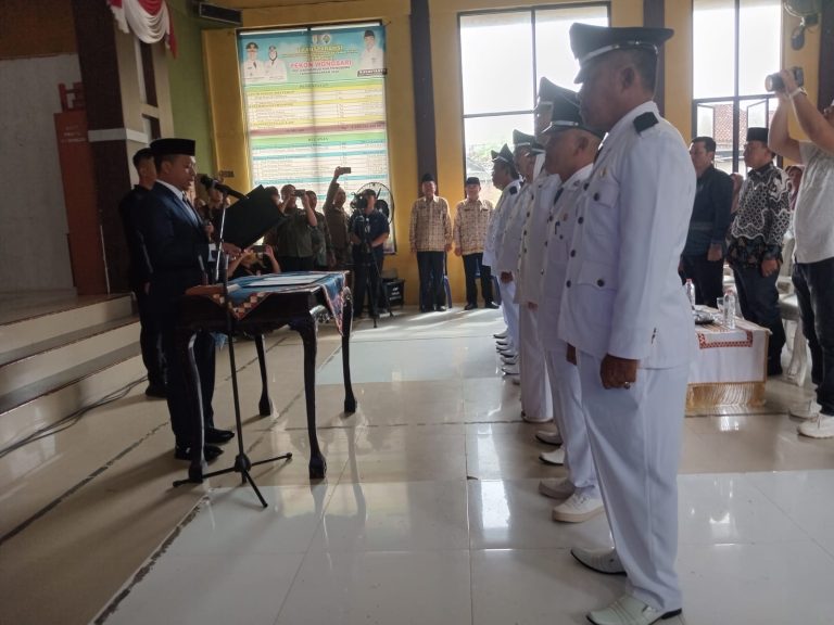 Pringsewu — Sebanyak lima Kepala Pekon (Kapekon) hasil Pemilihan Antarwaktu (PAW) serta tiga Penjabat Kepala Pekon (Pj Kapekon) persiapan di Kabupaten Pringsewu resmi dilantik dan diambil sumpah jabatannya oleh Bupati Pringsewu, Riyanto Pamungkas.