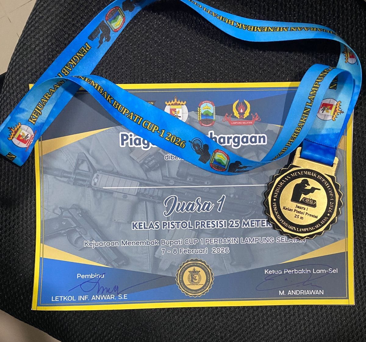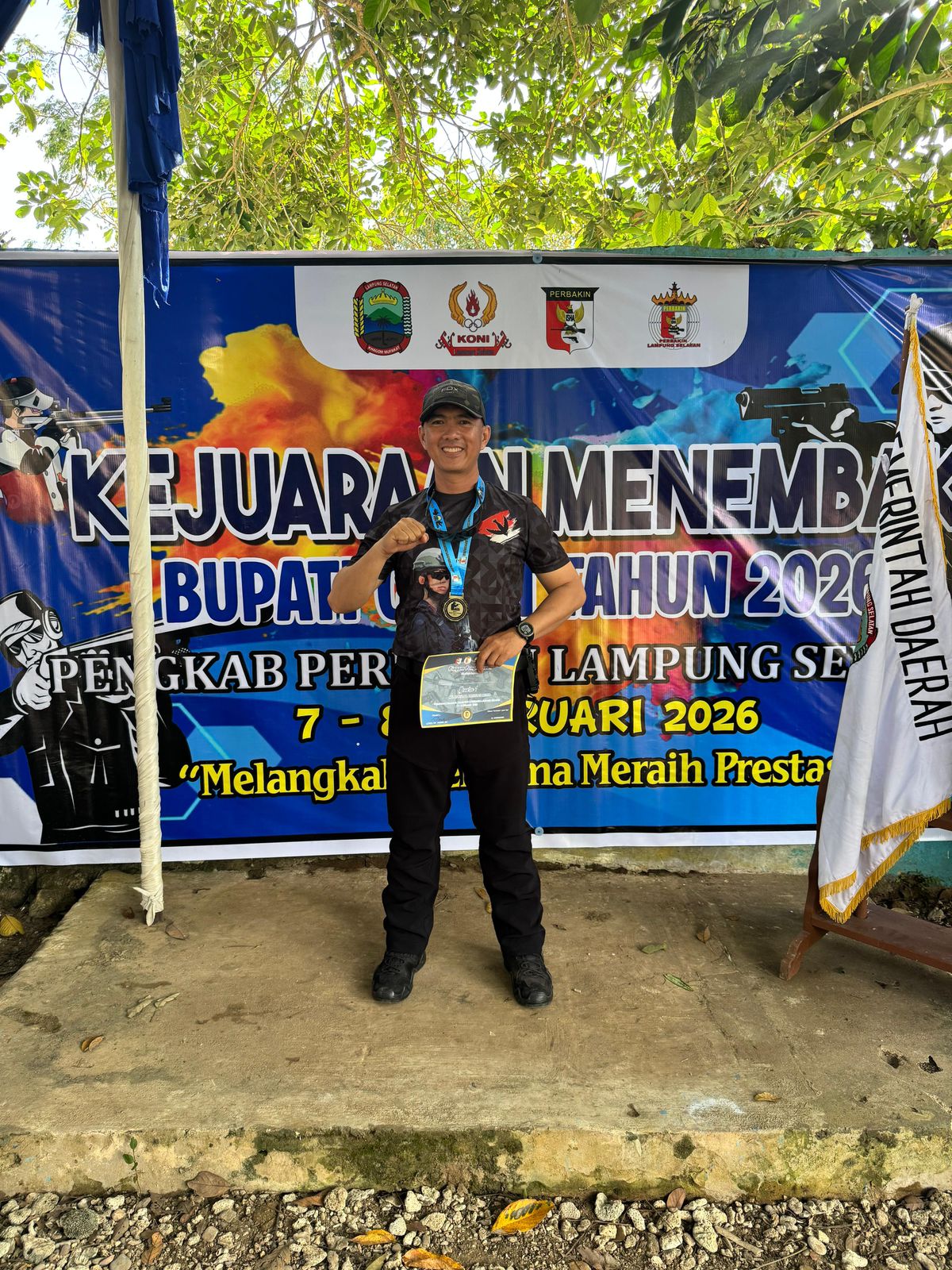 Lampung Selatan —  Personel Detasemen Gegana Satuan Brimob Polda Lampung, Aiptu Antoni Adha, menorehkan prestasi membanggakan dengan meraih Juara 1 pada Kejuaraan Menembak Bupati Cup 1 Kabupaten Lampung Selatan. Ia tampil sebagai yang terbaik di kategori bergengsi Pistol Presisi 25 Meter dalam ajang yang digelar untuk memeriahkan Hari Ulang Tahun Kabupaten Lampung Selatan.