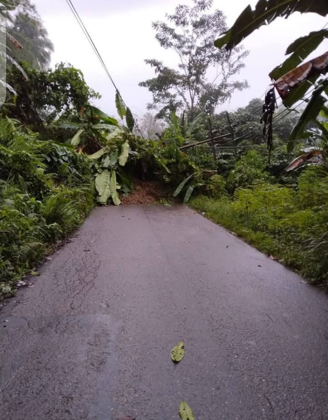 Hal ini disebabkan cuaca yang kurang bersahabat dengan alam derasnya hujan dan angin kencang hingga menimbulkan pohon tumbang dan tiang listrik PLN roboh di sertai tanah longsor hingga sempat menghambat aktifitas warga desa dan masyarakat luas yang melintasinya. Rabu, 19/11/2025.