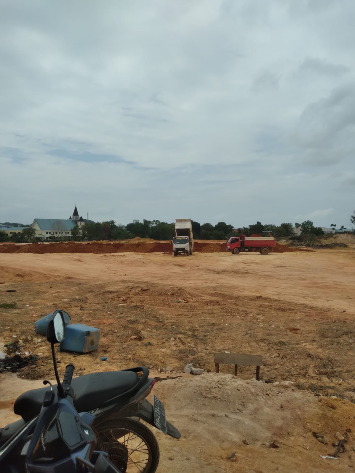 Awalnya di lokasi belum terlihat papan informasi perizinan proyek sehingga menimbulkan pertanyaan warga sekitar terkait legalitas kegiatan pematangan lahan tersebut.