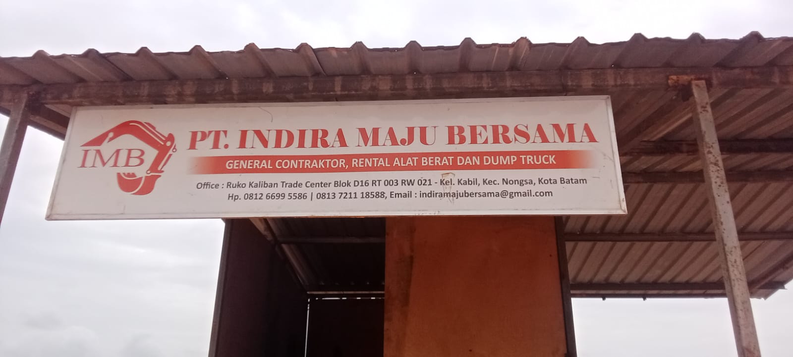 Di sekitar lokasi ditemukan papan identitas PT Indira Maju Bersama (IMB) sebagai perusahaan general kontraktor sekaligus penyedia rental alat berat dan dump truck yang berada di area kegiatan.