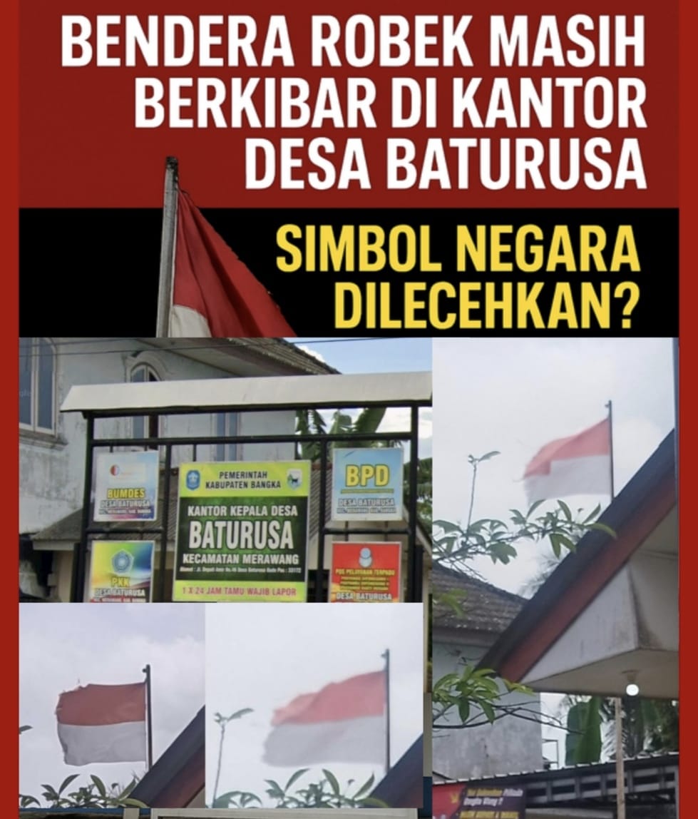 Bendera Robek Masih Berkibar di Kantor Desa Baturusa, Simbol Negara Dilecehkan?