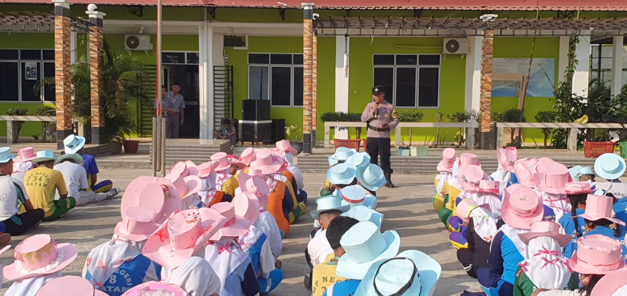 Bhabinkamtibmas Kelurahan Batu Besar Edukasi Tertib Lalu Lintas Dalam Kegiatan MPLS SMA Negeri 15 Batam
