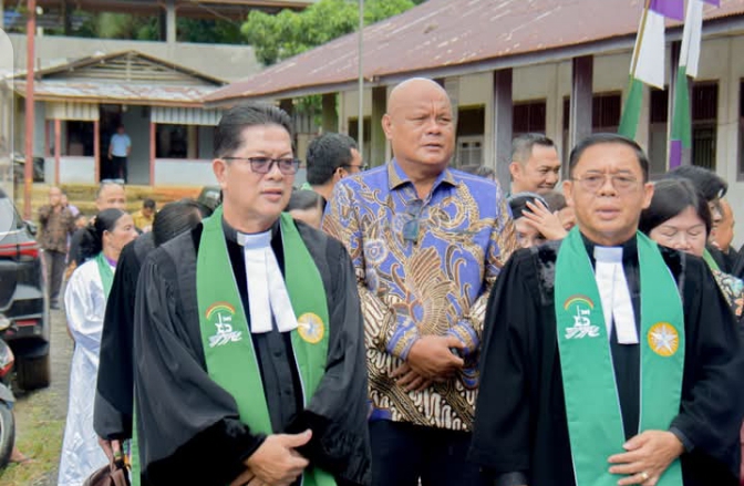Bupati Nias Utara Amizaro Waruwu menghadiri pelaksanaan Ordinasi Vikar menjadi Pendeta di Gereja Banua Niha Keriso Protestan (BNKP), yang dilaksanakan di Gereja BNKP Jemaat Bo’uso Resort 29 yang dipimpin langsung oleh Ephorus BNKP Pdt. Otoriteit Dachi, S.Th., M.Si.