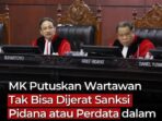 Akhirnya Wartawan Dianggap Manusia oleh Negara, MK Tegaskan Tak Bisa Langsung Dipidana Jakarta|Januari 20, 2026Januari 20, 2026oleh Dwi Hartoyo JAKARTA — Setelah puluhan tahun menghadapi kriminalisasi, intimidasi, dan jerat pidana hanya