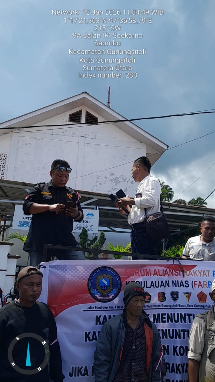 Intinews.com Gunungsitoli — Forum Aliansi Rakyat Peduli Kepulauan Nias (FARPKeN) menyatakan akan menggelar aksi damai lanjutan pada Senin depan setelah aksi damai pertama yang digelar hari ini di halaman Kantor Kejaksaan Negeri Gunungsitoli berujung kekecewaan. Senin 12/01/2026.