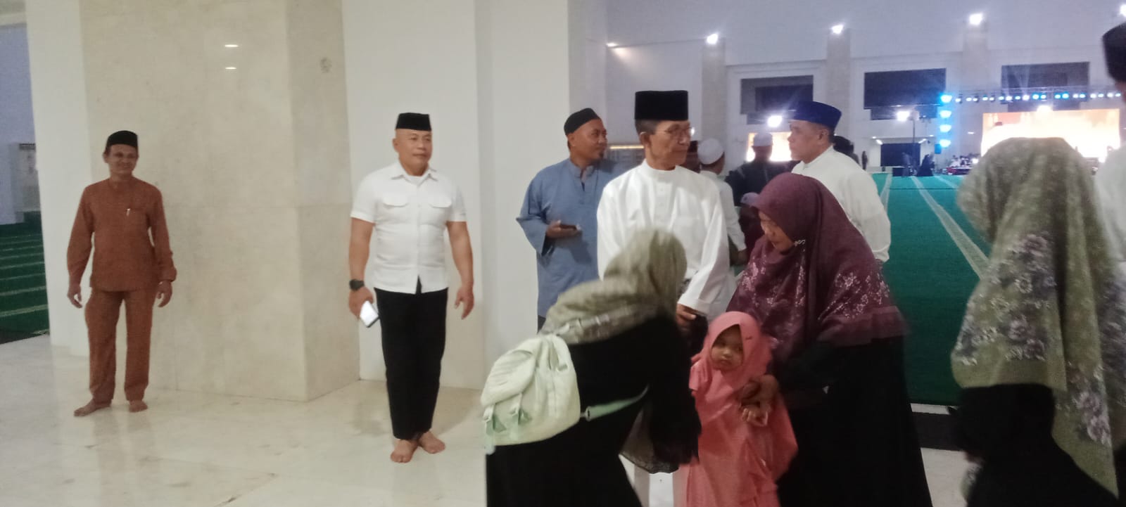 Suasana religius semakin terasa ketika lantunan shalawat dan doa bergema di seluruh penjuru masjid, menghadirkan suasana hangat yang menyentuh hati ribuan jamaah.