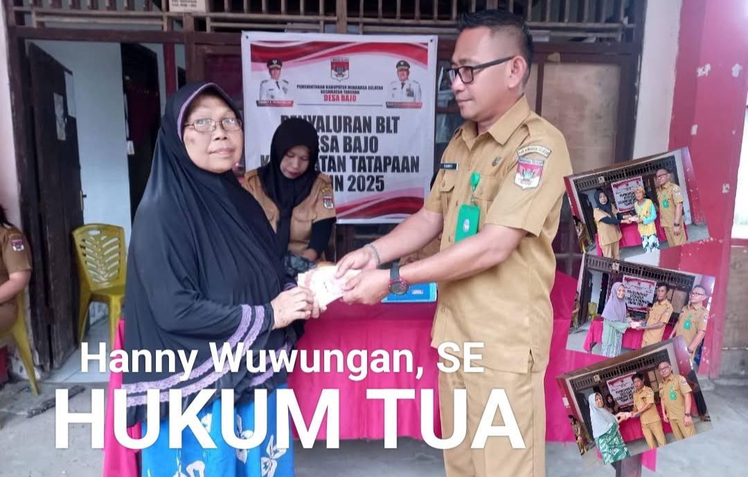 Bagaikan kembali ke masa pandemi karena bantuan pemerintah terus berlanjut. Pemerintah Desa (Pemdes) Desa Bajo kecamatan Tatapaan kabupaten Minahasa Selatan Sulawesi Utara. Lewat Hanny Wuwungon,SE Hukum tua Desa Bajo bertempat di BPU desa tepatnya pada 11 Agustus 2025 Senin kemarin, Bantuan Langsung Tunai (BLT) yang bersumber dari dana T.A 2025, disalurkan ke- 23 (KPM) Keluarga penerima manfaat.