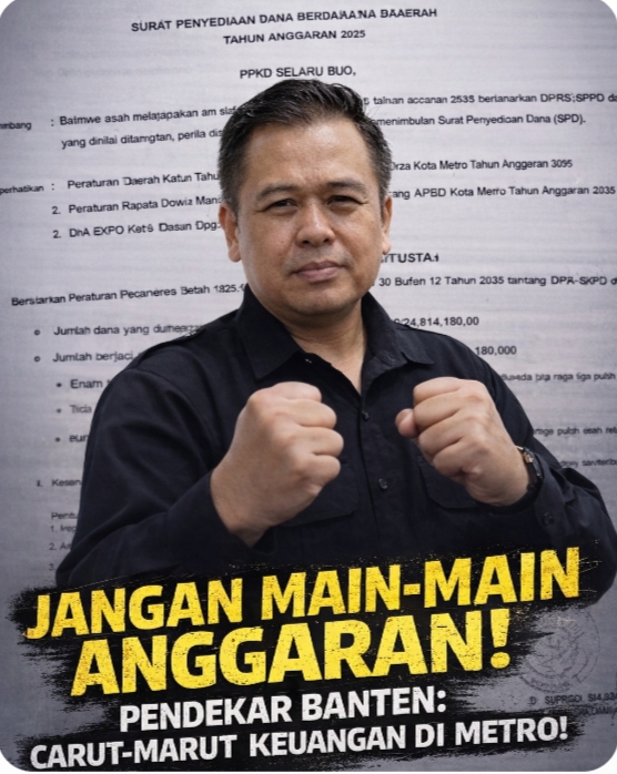 METRO — Kondisi tata kelola keuangan daerah di Kota Metro kembali menjadi sorotan tajam. Ketua Pendekar Banten Silat dan Seni Debus Surosowan Provinsi Lampung, H. Tb Ismail S., SH, melontarkan peringatan keras kepada jajaran pemerintah daerah agar tidak bermain-main dengan anggaran.