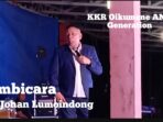 Ps. Johan Lumoindong pembicara KKR Oikumene ANG Generation, bertempat di Lapangan Sepak Bola Desa Tenga, Kecamatan Tenga Raya, Sulawesi Utara, malam ini Jumat, 10 Oktober 2025, KKR yang mengangkat Tema “Mengucap Syukur dalam Segala Hal”bmenjadi sorotan warga dan mediaNet pasalnya, terpantau media Ribuan jemaat dan masyarakat memadati lapangan untuk memuji dan menyembah Tuhan. Lagu-lagu pujian yang di lengkapi dengan tarian rebana lengkapi akan ibadah ini