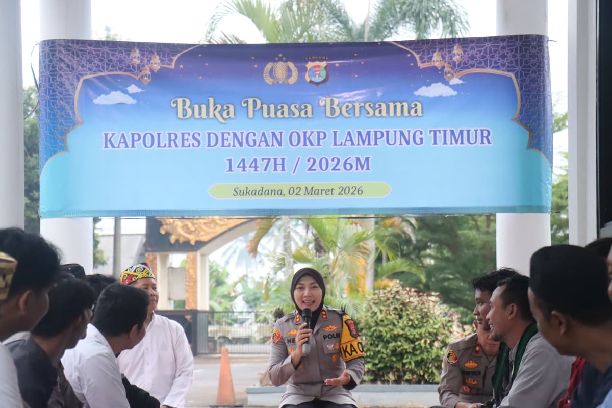 Lampung Timur — Kapolres Lampung Timur menggelar kegiatan buka puasa bersama Organisasi Kemasyarakatan Pemuda (OKP) Kabupaten Lampung Timur, bertempat di Masjid Al Kautsar Polres Lampung Timur, pada momen bulan suci Ramadan. Senin (2/3/26).