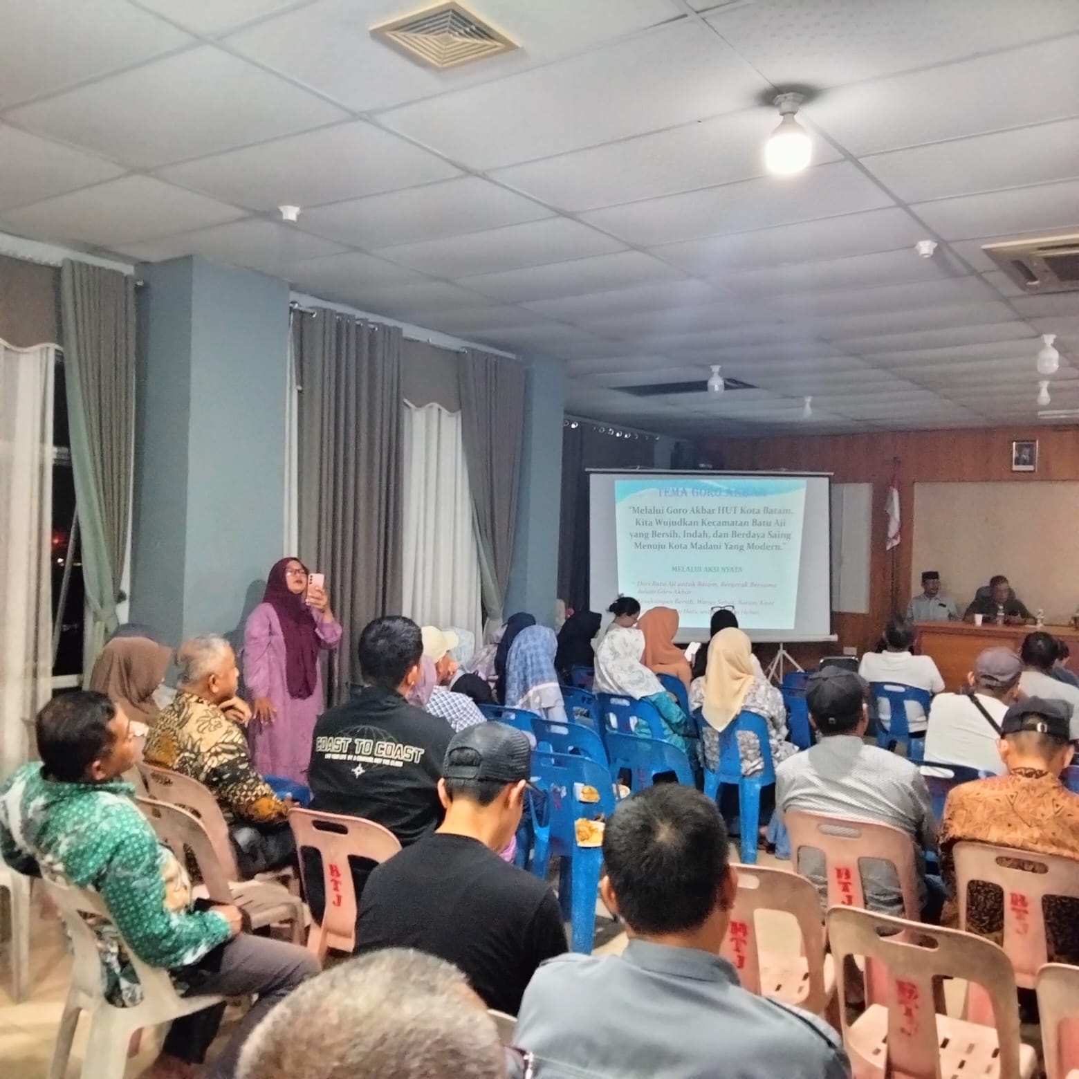 Batu Aji — Upaya besar Pemerintah Kecamatan Batu Aji dalam mewujudkan lingkungan yang bersih, tertata, dan berdaya saing kembali ditunjukkan melalui rapat resmi pembentukan Panitia Goro Akbar dalam rangka memperingati Hari Ulang Tahun Kota Batam. Pertemuan yang dilaksanakan pukul 20:00 hingga 22:00 WIB di Lantai 3 Gedung Serbaguna Kantor Camat Batu Aji itu berlangsung intens dan terstruktur, menunjukkan keseriusan pemerintah dalam menata wajah kecamatan menuju standar kota modern.