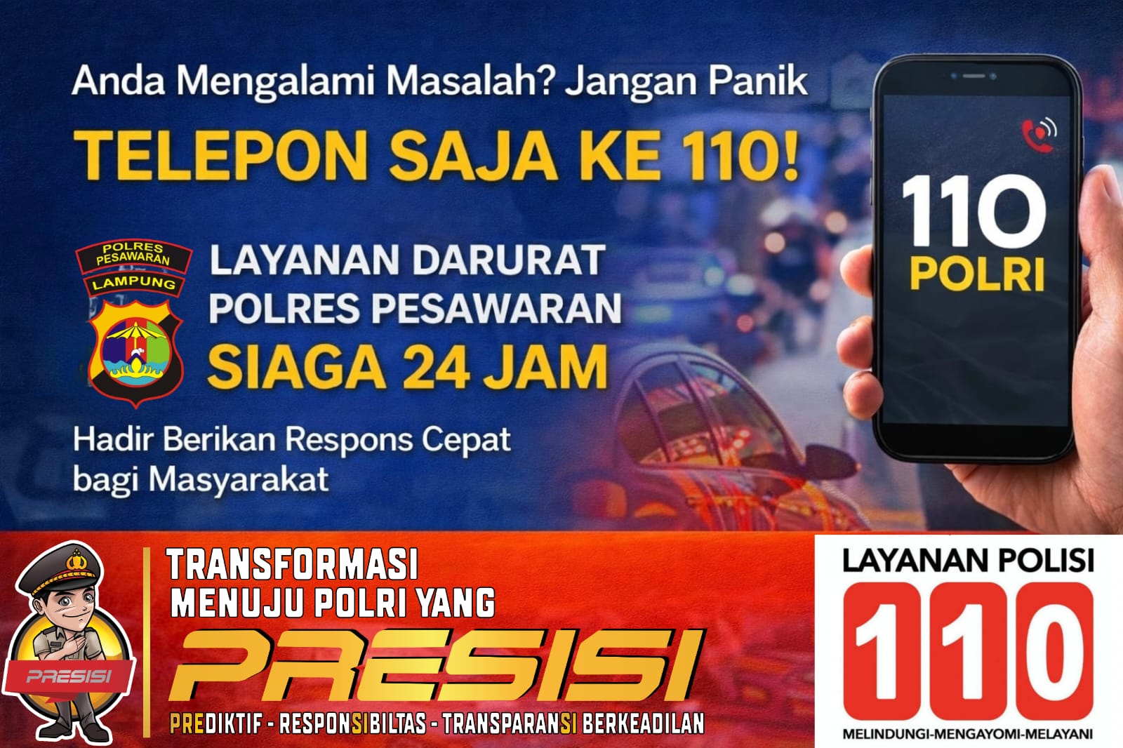 Kapolres Pesawaran melalui Wakapolres Pesawaran Kompol Sugandhi Satria Nugraha, S.I.P., M.H. menyampaikan bahwa layanan 110 merupakan bentuk komitmen Polri dalam memberikan pelayanan terbaik dan respons cepat kepada masyarakat.