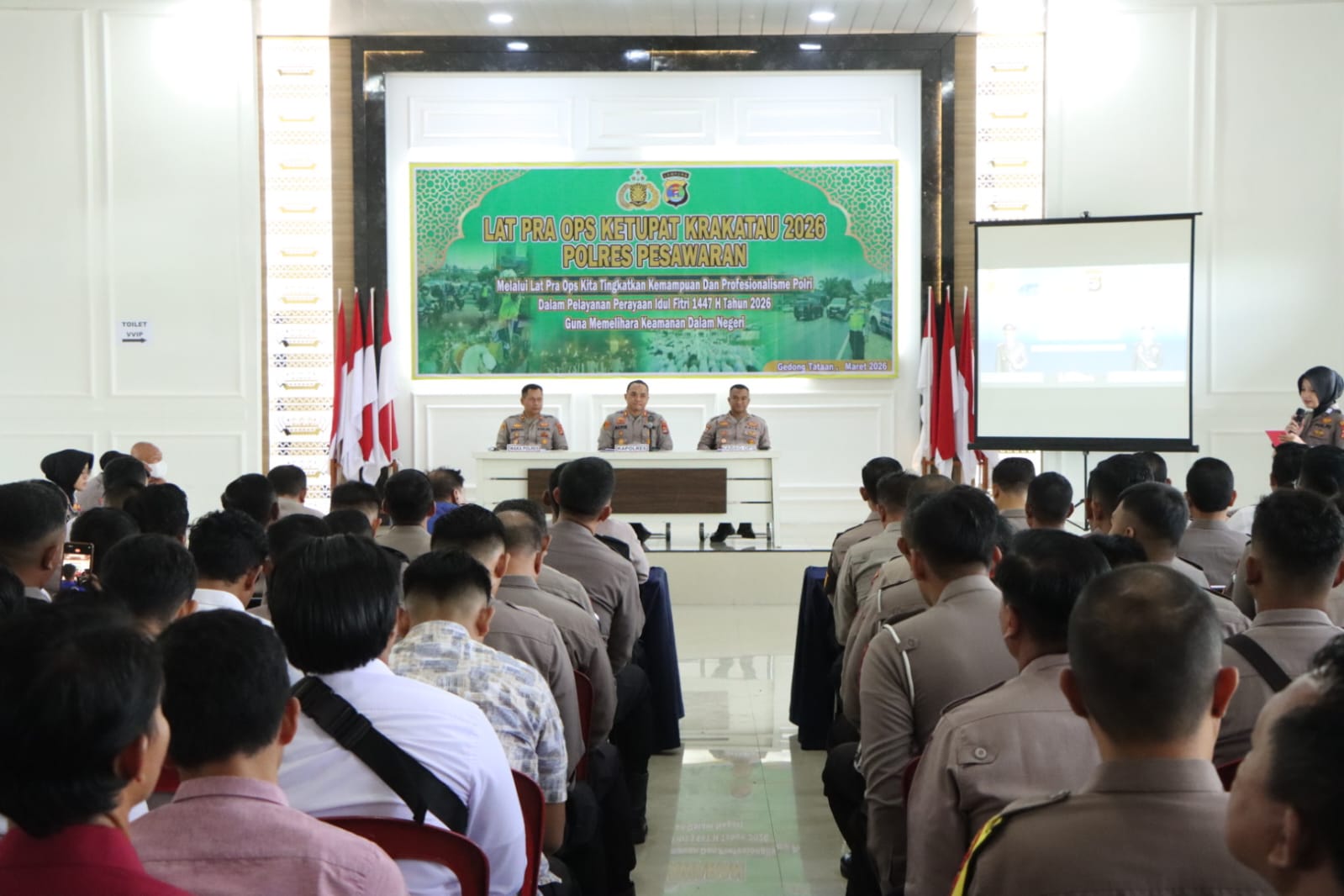 Polres Pesawaran, Polda Lampung – Menjelang perayaan Hari Raya Idul Fitri 1447 H, Polres Pesawaran mematangkan kesiapan jajaran personelnya melalui kegiatan Latihan Pra Operasi (Latpra Ops) Ketupat Krakatau 2026. Agenda strategis ini digelar untuk menyatukan visi dan strategi pengamanan guna menjamin kelancaran arus mudik serta kenyamanan masyarakat yang merayakan lebaran di wilayah hukum Kabupaten Pesawaran.