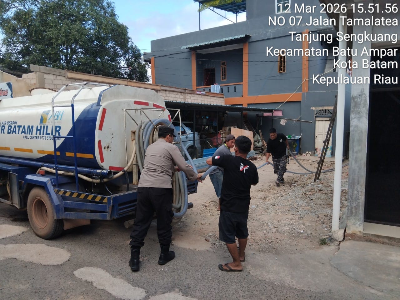 Batam, Intinews.com. Memasuki hari ke-49 gangguan pasokan air, jajaran Polsek Batu Ampar, Polresta Barelang, terus melakukan pemantauan dan monitoring pendistribusian air bersih kepada warga yang terdampak di wilayah Kelurahan Tanjung Sengkuang dan Kelurahan Batu Merah, Kecamatan Batu Ampar, Kota Batam. Kegiatan yang dilaksanakan pada Kamis (12/03/2026) ini merupakan wujud nyata kepedulian dan pelayanan kepolisian untuk memastikan kebutuhan dasar masyarakat tetap terpenuhi selama masa gangguan berlangsung.