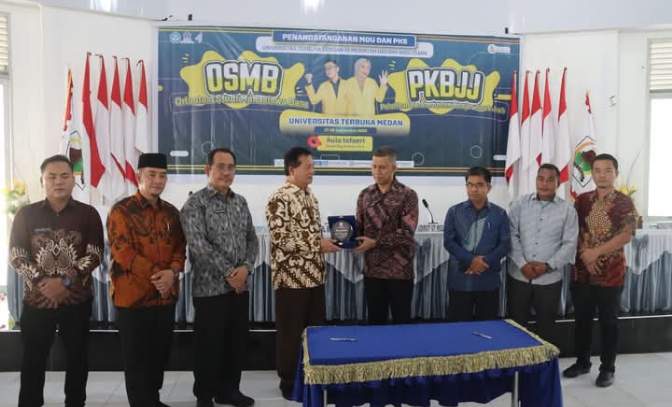 Pemerintah Kabupaten Nias Utara bersama Universitas Terbuka (UT) resmi melaksanakan penandatanganan Memorandum of Understanding (MoU) dan Perjanjian Kerja Sama (PKS), Sabtu (27/9/2025). Kegiatan yang dirangkai dengan Orientasi Studi Mahasiswa Baru (OSMB) serta Pelatihan Keterampilan Belajar Jarak Jauh (PKBJJ) ini berlangsung di Aula Pendopo Bupati Nias Utara.