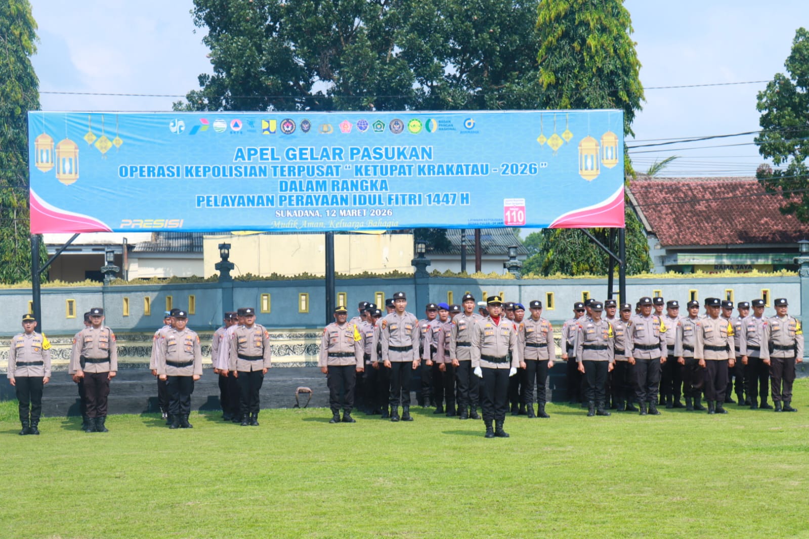 LAMPUNG TIMUR – Polres Lampung Timur menggelar Apel Gelar Pasukan Operasi Kepolisian Terpusat Ketupat Krakatau 2026 dalam rangka pengamanan perayaan Idul Fitri 1447 Hijriah.