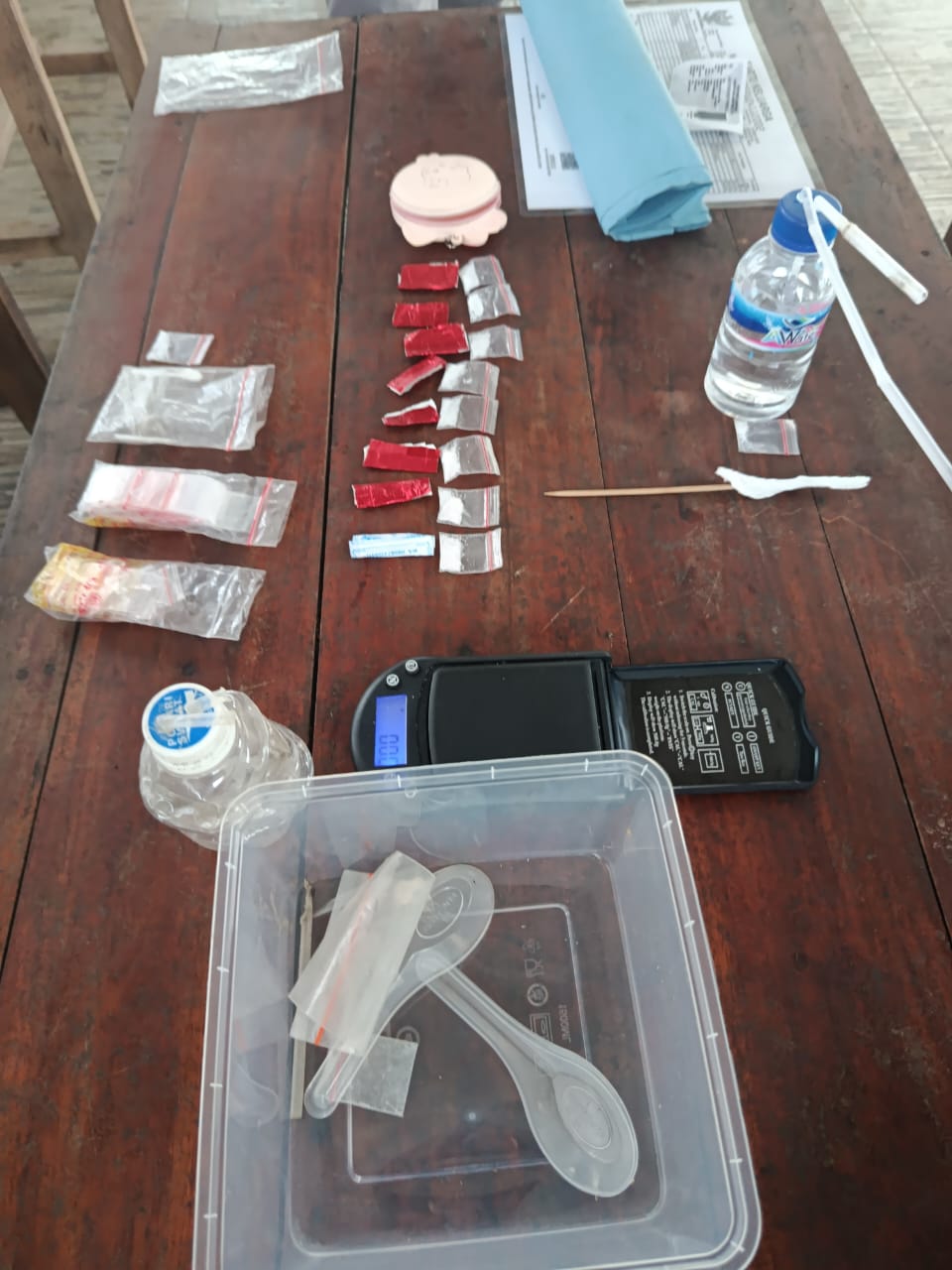 Petugas kemudian melakukan pemeriksaan terhadap para pelaku serta melakukan penggeledahan di lokasi. Dari hasil pemeriksaan dan penggeledahan tersebut, petugas menemukan sejumlah barang bukti yang diduga berkaitan dengan tindak pidana narkotika jenis sabu-sabu.