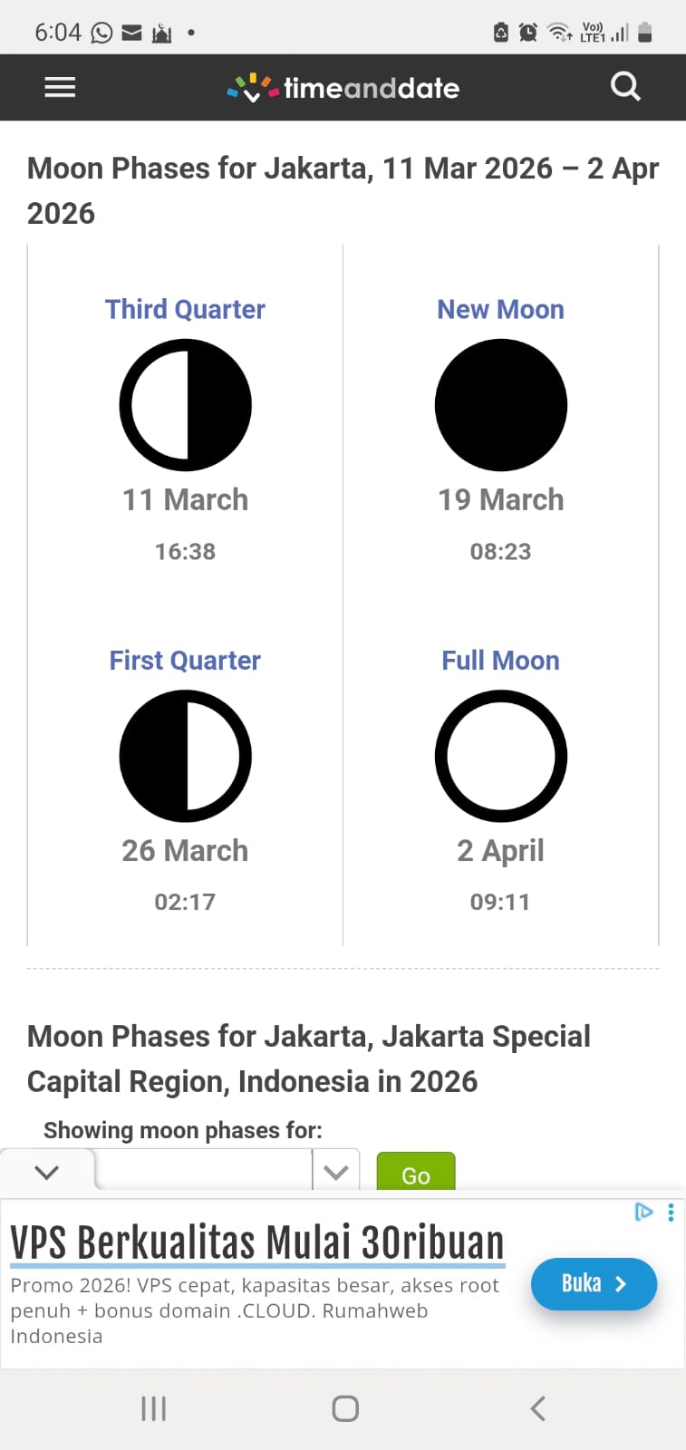 Nasional  —  Data satelit terbaru menunjukkan bahwa fase bulan baru (new moon) diperkirakan terjadi pada Kamis, 19 Maret 2026 pukul 08.23 WIB. Secara astronomis, momen ini menjadi penanda awal pergantian bulan dalam kalender Hijriah, yang sangat dinantikan oleh umat Islam sebagai penentu datangnya Hari Raya Idulfitri.