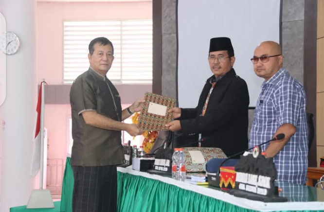 Bertempat di Ruang Rapat Lantai III DPRD Kab. Nias Utara dilaksanakan Rapat Paripurna DPRD Kabupaten Nias Utara dalam rangka Penyampaian Nota Jawaban Bupati Nias Utara terhadap Pemandangan Umum Fraksi-fraksi atas Rancangan Peraturan Daerah (RANPERDA) Kabupaten Nias Utara tentang Perubahan Anggaran Pendapatan dan Belanja Daerah (P-APBD) Tahun Anggaran 2025 yang dipimpin oleh Ketua DPRD Kabupaten Nias Utara. Jumat, 25/07/2025.