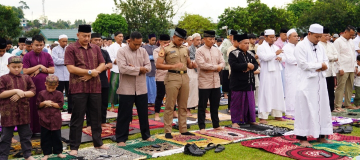 “Alhamdulillah kita bisa kembali bertemu dengan hari kemenangan, di Hari Raya Idul Fitri 1 Syawal 1447 H, yang mana selama satu bulan lamanya kita harus berjuang menahan segala hawa nafsu baik lapar dan dahaga, untuk memperoleh kemenangan di hari yang fitri ini,” ujarnya.