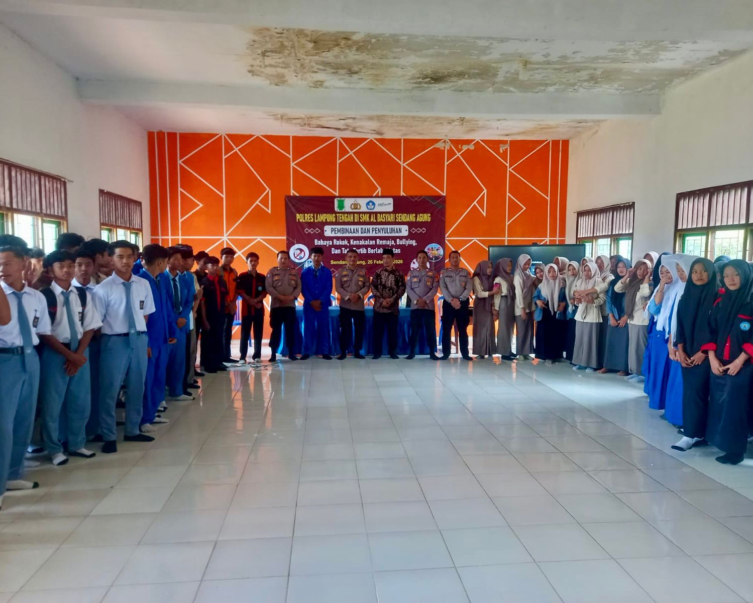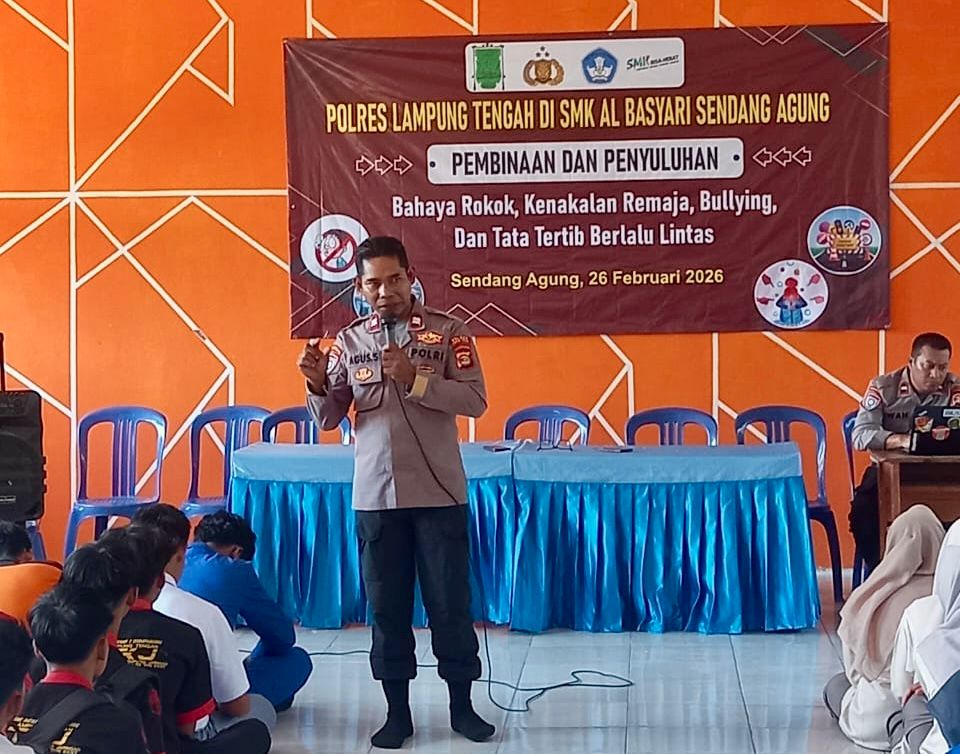 Melalui Satuan Binmas, kegiatan pembinaan dan penyuluhan dilaksanakan pada Kamis (26/2/26) bertempat di Aula SMKS Al-Basari, Desa Sendang Mulyo, Kecamatan Sendang Agung, Kabupaten Lampung Tengah.