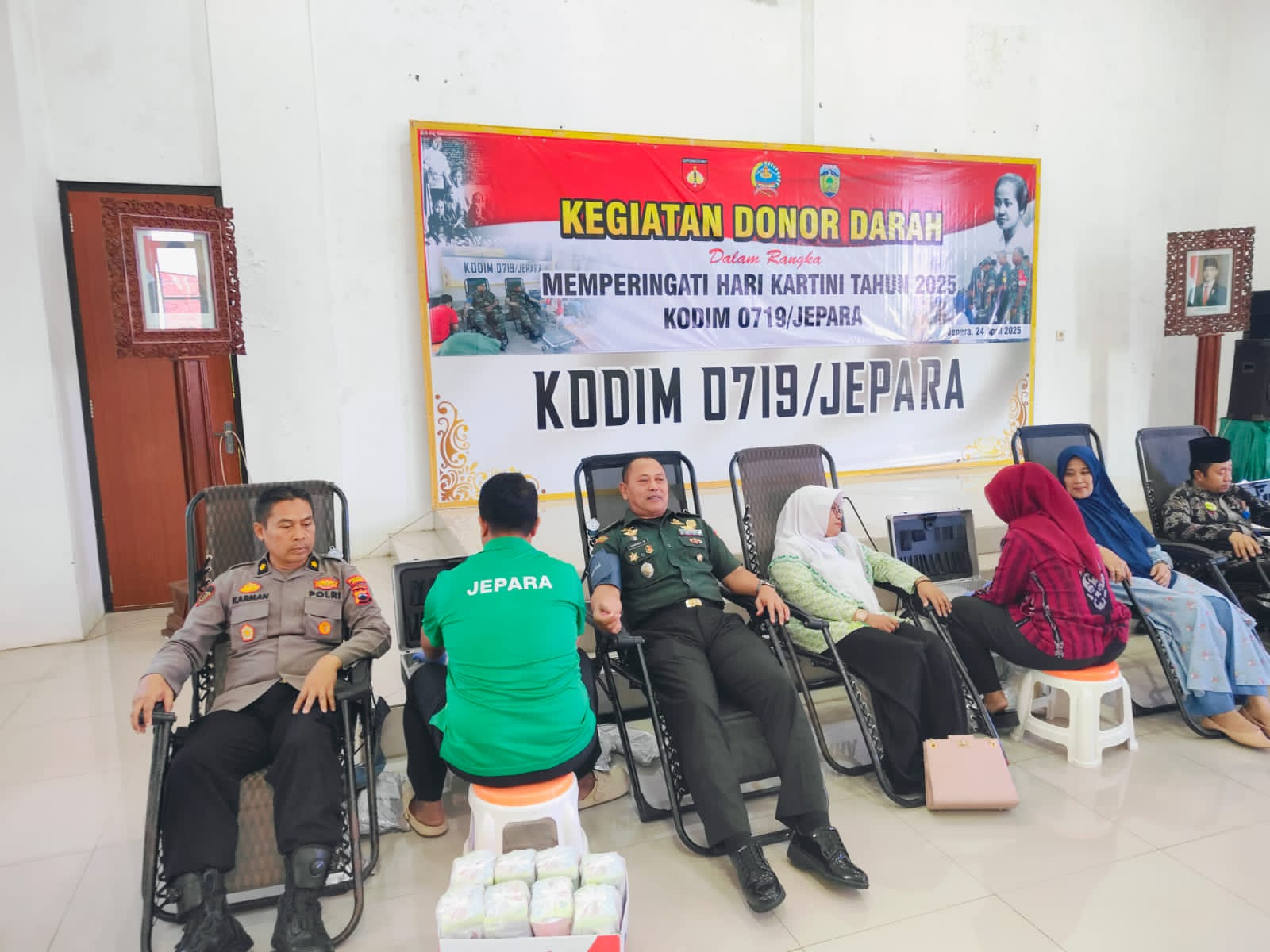 Terlihat pada hari ini, personel Polres Jepara yang dipimpin langsung Kapolres Jepara AKBP Erick Budi Santoso yang diwakili oleh Kabag SDM Kompol Karman menyumbangkan darahnya saat kegiatan sosial yang digelar Kodim 0719/Jepara dalam memperingati Hari Kartini 2025, pada hari Kamis (24/4/2025).