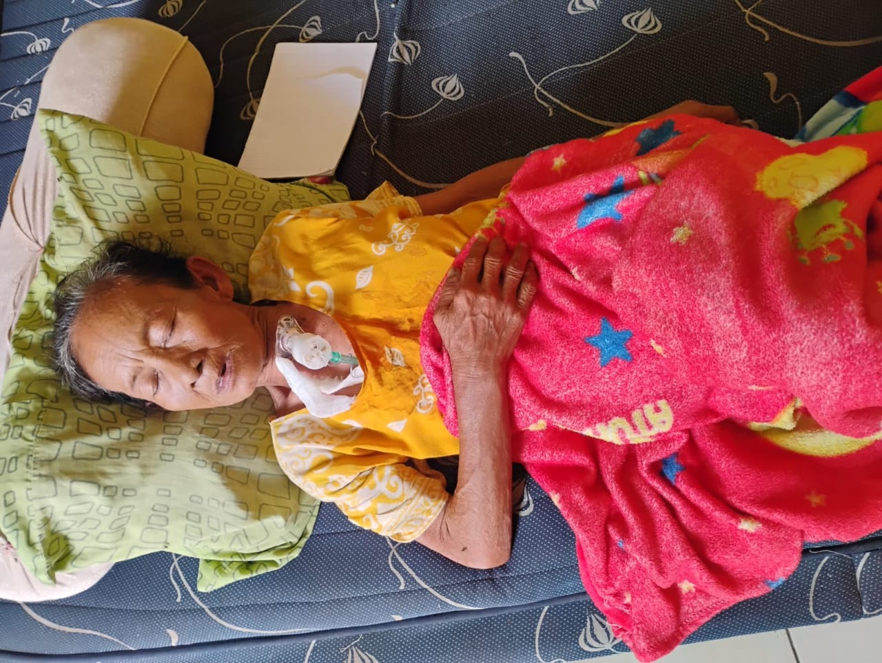 Di atas ranjang rumah sakit, usai menjalani operasi pemasangan trakeostomi atau alat bantu pernapasan, Rukmini hanya bisa menatap langit-langit kamar dengan mata berkaca-kaca. Sesekali ia bergumam pelan, memanggil anaknya yang tak kunjung datang.
