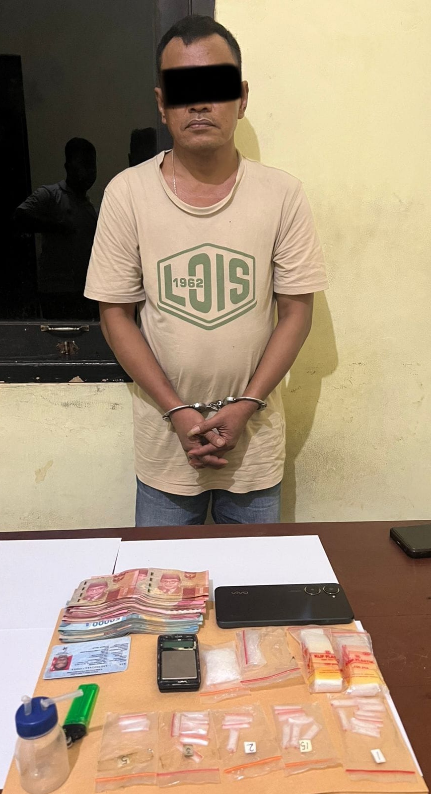 Dalam penggerebekan di rumah tersebut, petugas mendapati seorang pria berinisial L.H. (52) sedang berada di dalam kamar dan diduga tengah menggunakan narkotika jenis sabu. Dari hasil penggeledahan, polisi menemukan puluhan paket sabu siap edar beserta berbagai peralatan pendukung.