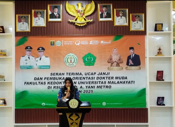 Senada, Direktur RSUD Jenderal A. Yani Metro, dr. Fitri Agustina, menegaskan bahwa penerimaan dokter muda dari Universitas Malahayati merupakan bukti nyata peran RSUD A. Yani sebagai rumah sakit pendidikan. Ia menyebut masa orientasi sebagai jembatan penting bagi mahasiswa untuk menghubungkan ilmu teori dengan praktik di lapangan.